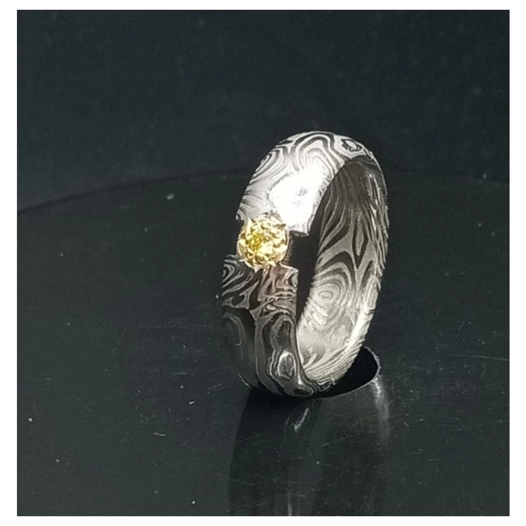 Ve vystaveném prstenu je použito žluté zlato a žlutý safír o průměru 2,5 mm.